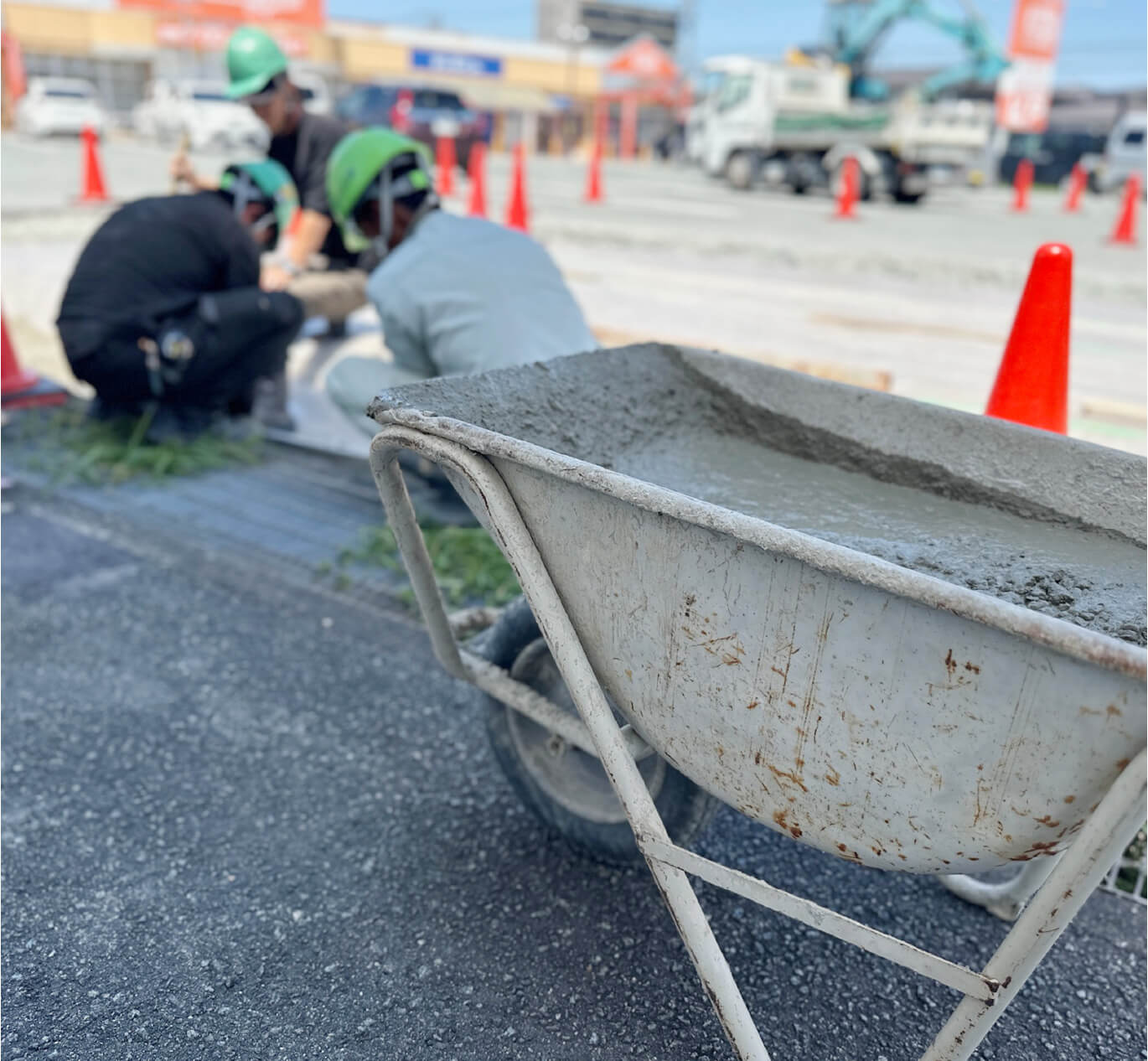 エリアは三重県の北勢が中心。土地の購入から分譲、開発まで、全てを自社で行っていることが有限会社ナカムラ工業の強み。水路を壊して設置し直す作業など特殊な仕事も経験できるため、専門的な知識や技術が身に付きます。