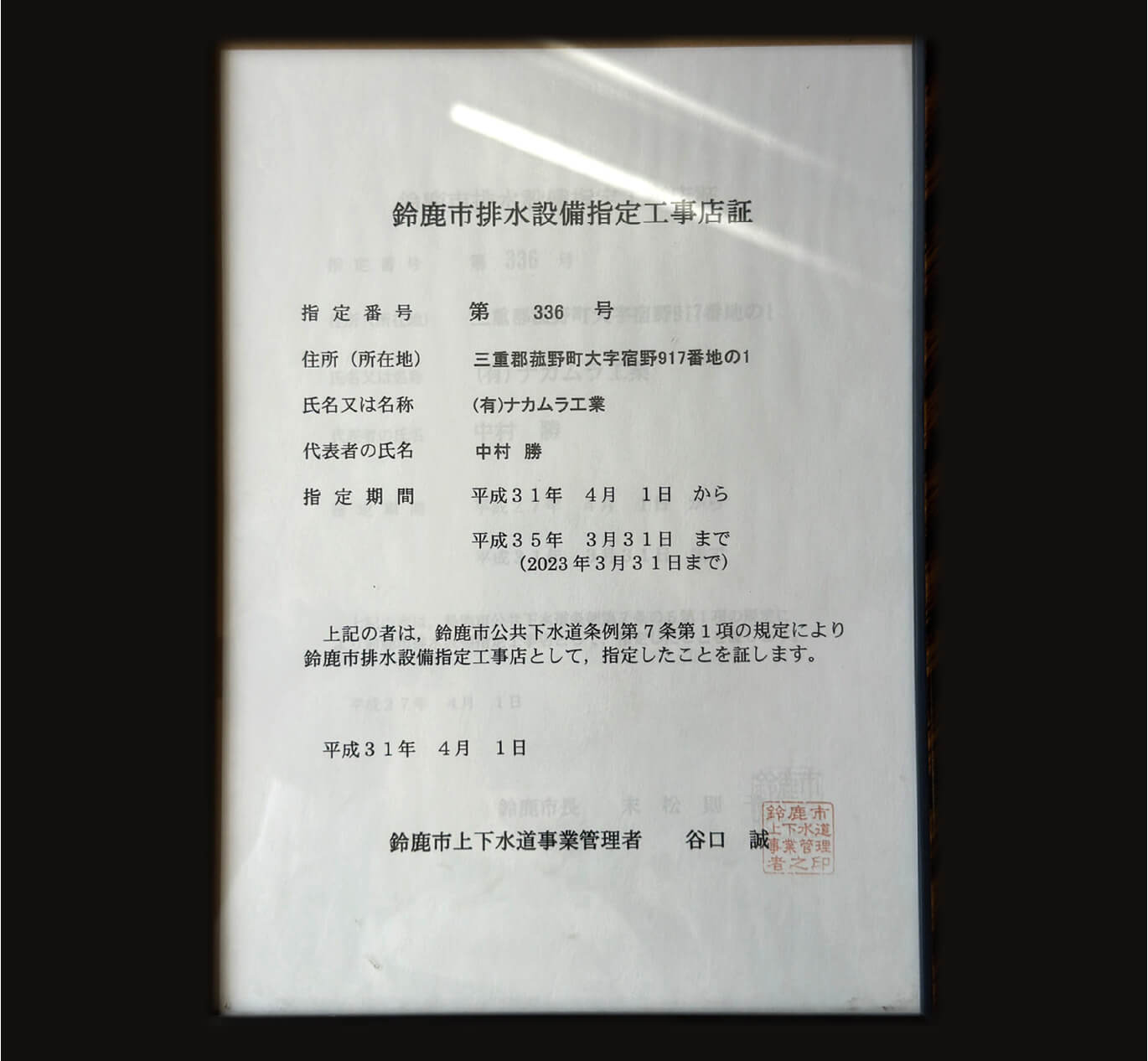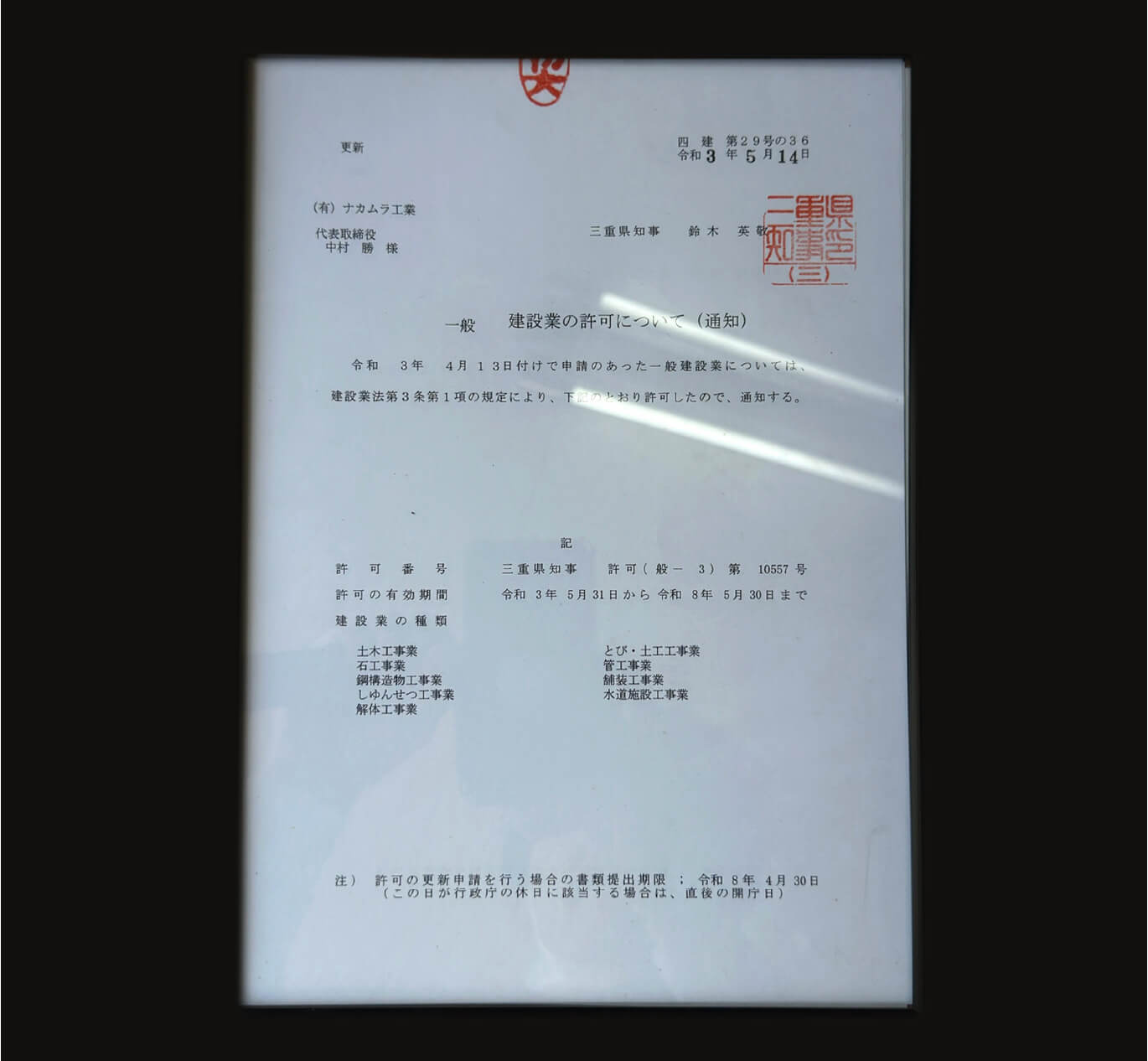 | 許可 | 三重県知事許可(般-3)第10557号 |
